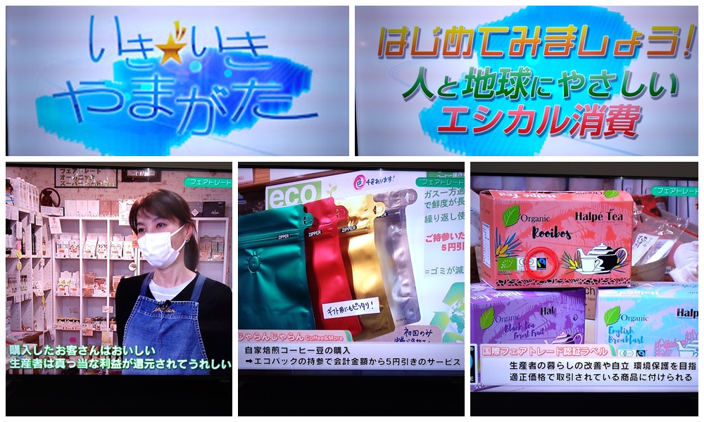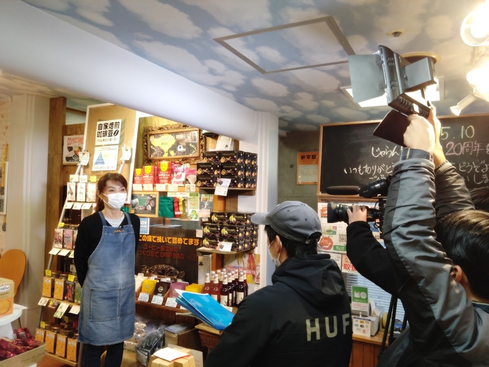 県政広報テレビ特別番組「いき いきやまがた 県内で進むエシカルの輪:人・社会・地域・環境への配慮 - 令和5年1/7(TUY)1/14(YBC)1/22(SAY)1/28(YTS)に出演しました。 番組内では、じゃらんじゃらんで扱っているフェアトレード商品をはじめ、現地買い付けの様子・SDGs・エコな取り組み等が紹介されました。微力ではございますがエコ活動やアップサイクルな取り組み等で、少しでも社会貢献が出来るように頑張ってまいりたいと思っております。 ( 撮影の様子) 2023/1月