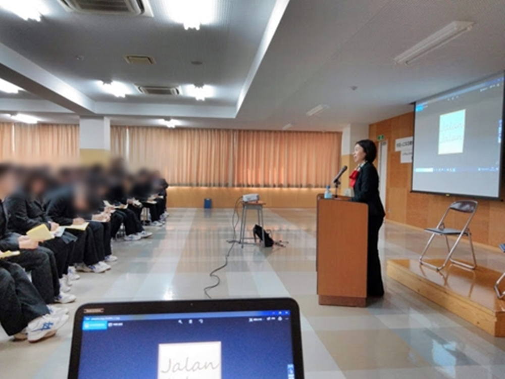 店長がこれまでの経験から思いついたものを全部いれてみました的にいろいろ喋ってました。メモを取っている生徒さんも多かったですね。始まる前は「1時間ももつかな~!?」なんて言ってたけど、予定の1時間を15分オーバーして無事終了。お礼の挨拶代表はサッカー部のキャプテンだそう。みんな礼儀正しいな~。店長が最後に言ってたけど、彼女の喋ったことが少しでも心に残って”あのおばちゃんがあんなこと言ってたっけなー”と思い出してくれたら嬉しいな、と思いました。
